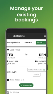 Planiranje vašeg sledećeg putovanja počinje ovde. Uz intuitivni interfejs aplikacije Denver Air Connection, lako možete pretraživati dostupne letove, upoređivati opcije i brzo rezervisati idealnu kartu koja odgovara vašim potrebama. Ali to nije sve – aplikacija vam pruža i potpunu kontrolu nad već potvrđenim putovanjima. Jednostavno pristupite svojim rezervacijama kako biste izmenili detalje, dodali posebne zahteve ili proverili najnovije informacije o letu, sve u realnom vremenu i bez muke, direktno sa vašeg mobilnog uređaja.