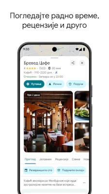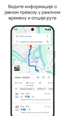 Крећите се светом самоуверено уз Google мапе. Пронађите најбоље руте за вожњу, ходање, бицикл и јавни превоз, уз GPS навигацију и податке о саобраћају у реалном времену. Откријте милионе предузећа, ресторана и продавница са сликама и рецензијама.