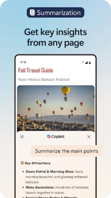 Otkrijte inteligentniji način rada uz Copilot, AI asistenta ugrađenog direktno u Microsoft Edge. Vaše pretrage postaju brže, preciznije i ličnije, zahvaljujući naprednoj veštačkoj inteligenciji. Istražujte vizuelno, postavljajući slike za pretragu i dobijajući uvid ili inspiraciju. Uštedite vreme koristeći Copilot za munjevito sumiranje veb-stranica, PDF dokumenata i video sadržaja, pružajući jasne i referencirane informacije za nekoliko sekundi. Sa podrškom za GPT-5, najnapredniji AI sistem do sada, Microsoft Edge donosi stručne rezultate uz minimalan napor s vaše strane, prepoznajući kada da brzo reaguje, a kada da se dublje posveti zadatku. Copilot nije samo pretraga; on je i vaš kreativni partner – od pretvaranja ideja u besprekorne nacrte, do pisanja priča i scenarija glasovnom komandom, pa čak i generisanja slika samo na osnovu vašeg opisa. Prevodite i lektorišite tekstove na više jezika, osiguravajući globalnu spremnost vašeg pisanja uz pomoć veštačke inteligencije.