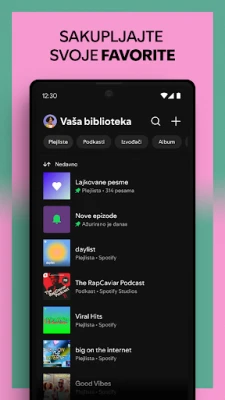 Sa Spotify-jem, muzika i podkasti su vam na dohvat ruke, bez ikakvih troškova. Uživajte u izuzetnoj slobodi istraživanja, gde možete puštati cele albume, pojedinačne pesme ili tematske liste pesama po izboru, čak i u nasumičnom režimu na mobilnim uređajima i tabletima. Neka vas vodi intuicija ili prepustite našim inteligentnim algoritmima da vam preporuče novi sadržaj koji će vas oduševiti. Formirajte sopstvene muzičke biblioteke i delite ih sa prijateljima, stvarajući zajednička zvučna iskustva. Spotify je vaša kapija ka muzičkom univerzumu koji se neprestano širi, nudeći vam putovanje kroz zvuk bez granica.